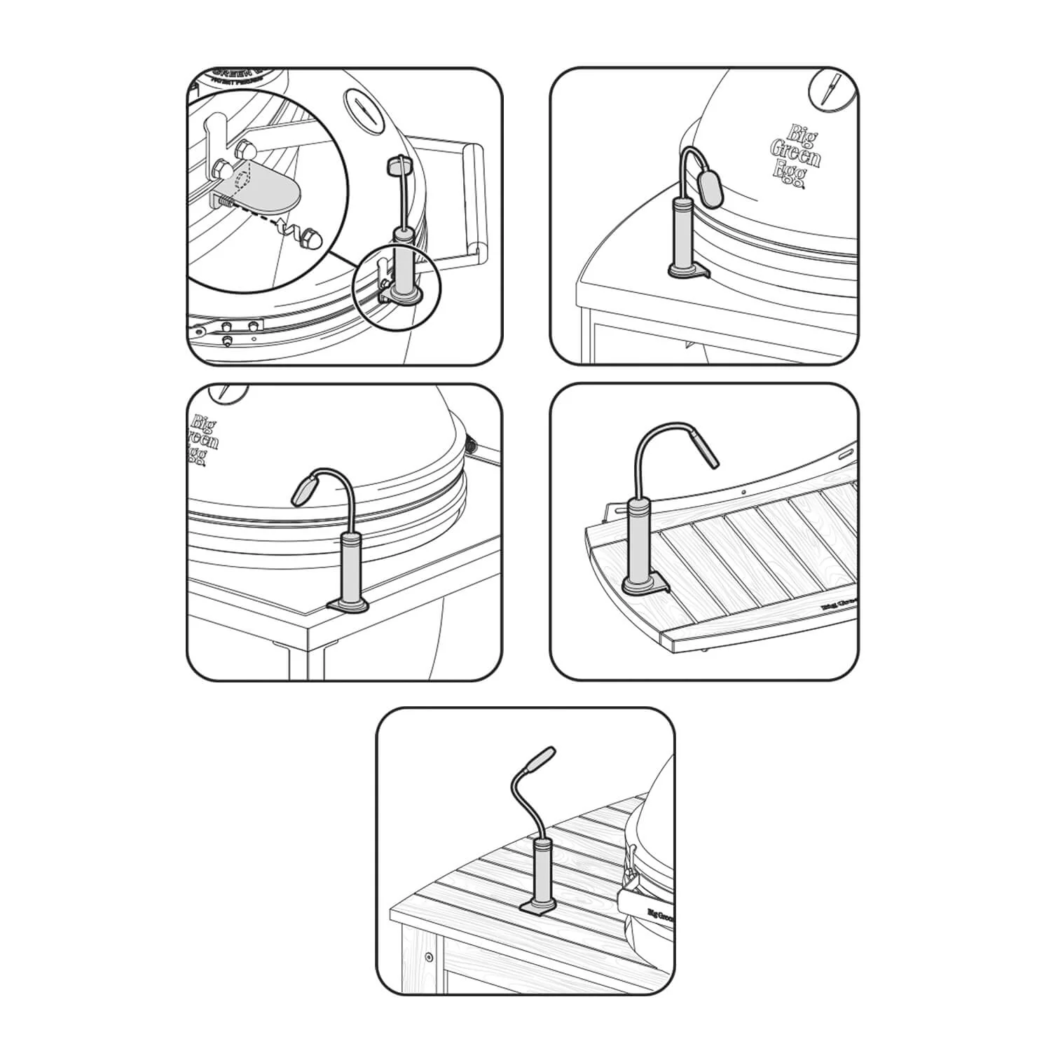 This high-intensity LED grill light has a flexible neck to focus hands-free lighting wherever you need it most. Features a strong magnetic base that connects to a handy mounting bracket – the mounting bracket is designed to easily connect the light to the EGG Band, Modular Nests, Islands and Tables.